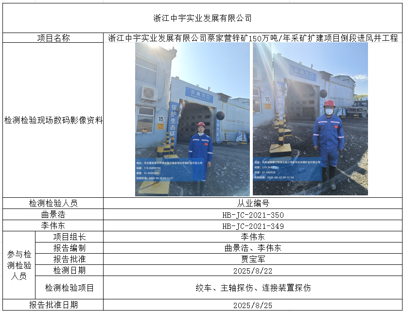 浙江中宇实业发展有限公司蔡家营锌矿150万吨/年采矿扩建项目倒段进风井工程